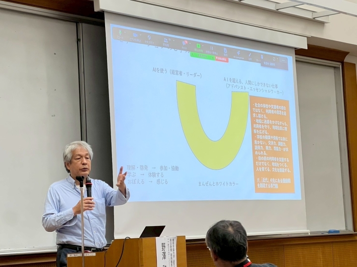 木下先生の講義は、統計上の数字を示した高齢化の現状から今後さらに高齢化が進むであろうことに伴う支援の困難や重要性を感じながらも、引き込まれる導入で始まりました。
